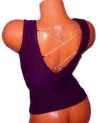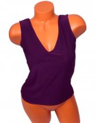 NÁDHERNÝ DÁMSKÝ TOP V LILKOVÉ BARVĚ S TŘPYTKAMI, PŘÍJEMNÁ A VELMI PRUŽNÁ LÁTKA, S OBOUSTRANNÝM VÝSTŘIHEM DO"V", CELKOVÁ DÉLKA 54 CM, OBVOD HRUDNÍKU V KLIDU 2 x 42 CM, OBVOD PASU V KLIDU 2 x 35 CM, PERFEKTNÍ STAV ![]()