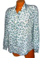 KRÁSNÁ HEDVÁBNÁ DÁMSKÁ HALENKA S DLOUHÝMI RUKÁVY. BÍLÁ VZOROVANÁ, VELMI PŘÍJEMNÁ, NEPRUŽNÁ A SPLÝVAVÁ, ROVNÝ STŘIH. DÉLKA 60 CM, OBVOD HRUDNÍKU 2 x 56 CM, DÉLKA RUKÁVŮ OD KRKU 71 CM, PROSÍM MĚŘTE, EASTEX, VEL. 42/44, TOP STAV