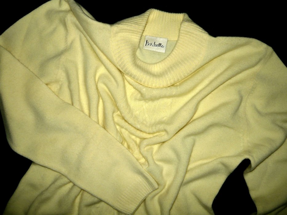 KRÁSNÝ NARCISOVÝ ŽLUTÝ DÁMSKÝ SVETŘÍK, VELMI PŘÍJEMNÁ STROJOVÁ PLETENINA (100 % AKRYL), DÉLKA ZAD 60 CM, OBVOD HRUDNÍKU V KLIDU 2 x 54 CM, DÉLKA RUKÁVŮ OD KRKU 74 CM, MĚŘTE PROSÍM, SUPER STAV
