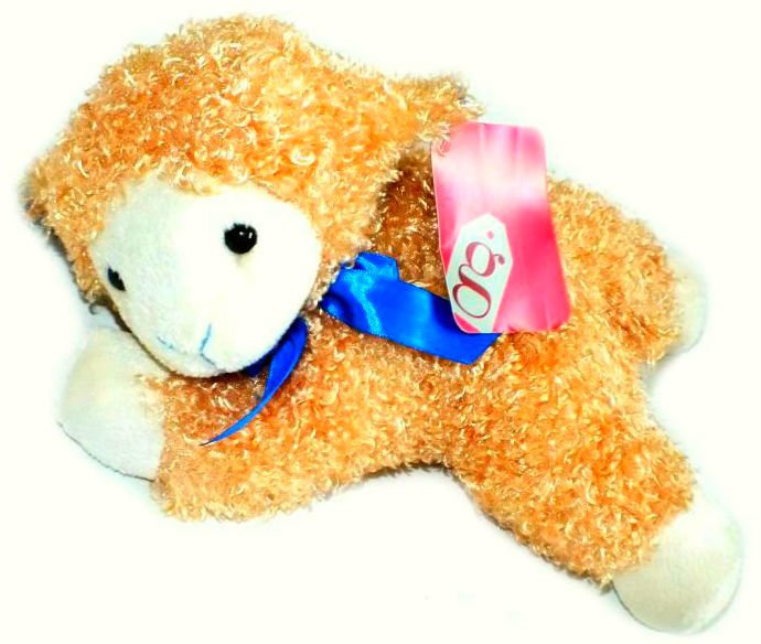 NÁDHERNÝ LEŽÍCÍ PLYŠOVÝ BERÁNEK VE "ZLATÉ" BARVĚ, DO POSTÝLKY, 26 CM, STAV: NOVÝ