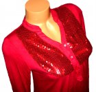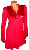NÁDHERNÁ RUBÍNOVÁ DÍVČÍ TUNIKA VPŘEDU NAHOŘE S PAJETKOVOU APLIKACÍ, S DLOUHÝMI RUKÁVY, PŘÍJEMNÁ PRUŽNÁ VISKÓZA S PODÍLEM ELASTANU (5 %), KRÁSNÝ STŘIH, DÉLKA 77 CM, OBVOD HRUDNÍKU V KLIDU 2 x 44 CM, DÉLKA RUKÁVŮ OD KRKU 71 CM, STAV: NOVÝ