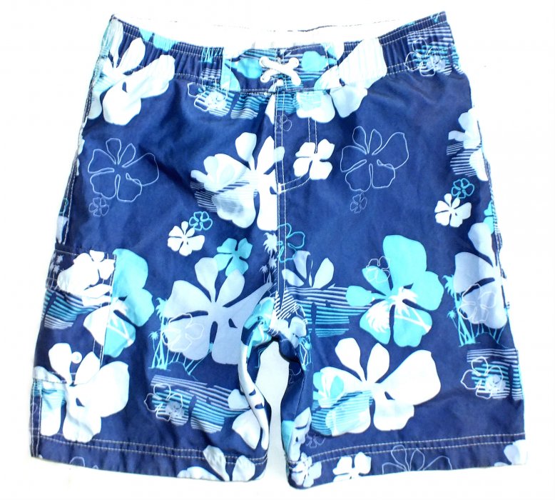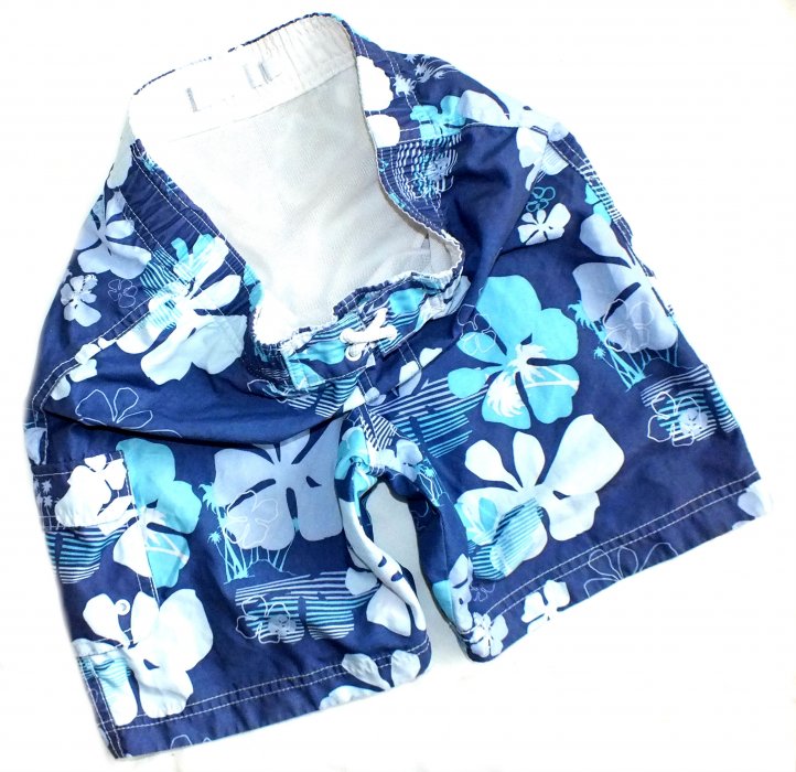 PĚKNÉ CHLAPECKÉ KRAŤÁSKOVÉ PLAVKY S TRENDY VZOREM, S KAPSOU NA SUCHÝ ZIP, S BÍLOU NYLONOVOU SÍŤOVANOU PODŠÍVKOU, S TAJNOU KAPSIČKOU UVNITŘ NA SUCHÝ ZIP, BOČNÍ DÉLKA 40 CM, PAS: GUMA, OBVOD PASU 2 x 32 CM, PĚKNÝ STAV