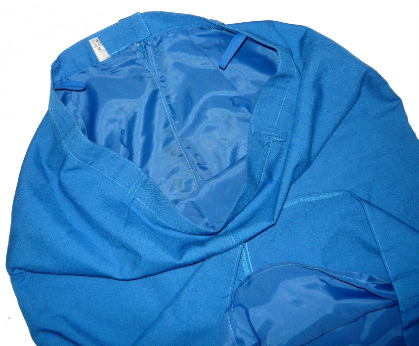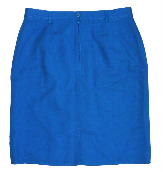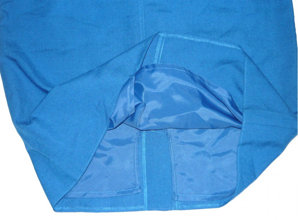 KRÁSNÁ SYTĚ MODRÁ DÁMSKÁ SUKNĚ SE ZAPÍNÁNÍM VZADU NA ZIP (cca 19 cm) + KNOFLÍK, S ROZPARKEM VZADU (cca 14 cm), S POUTKY NA PÁSEK. VELMI PŘÍJEMNÁ, LEHOUČKÁ A NEPRUŽNÁ LÁTKA (50 % viskóza + 50 % polyester) SE SYTĚ MODROU NYLONOVOU PODŠÍVKOU. ROVNÝ/POUZDROVÝ STŘIH. CELKOVÁ DÉLKA 61 CM, OBVOD PASU 2 x 43,5 CM, VEL. 46, MĚŘTE PROSÍM! PĚKNÝ STAV