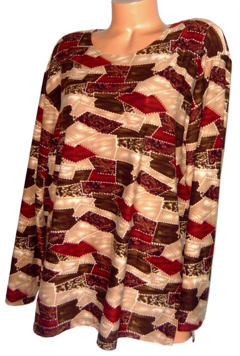 KRÁSNÁ BAREVNÁ DÁMSKÁ HALENKA S DLOUHÝMI RUKÁVY, ROVNÝ STŘIH S ROZPARKY PO STRANÁCH CCA 11 CM. VELMI PŘÍJEMNÝ A PRUŽNÝ MATERIÁL SE SAMETOVÝM EFEKTEM (polyester + spandex). DÉLKA ZAD 70 CM, OBVOD HRUDNÍKU V KLIDU 2 x 60 CM, DÉLKA RUKÁVŮ OD VÝSTŘIHU 76 CM, VEL. XXL, PĚKNÝ STAV