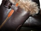 KRÁSNÉ KOŽENÉ DÁMSKÉ KOZAČKY V HNĚDÉ BARVĚ, S UMĚLÝM KOŽEŠINKOVÝM LEMOVÁNÍM, LEHCE UTEPLENÁ, PEVNÁ PROTUSKLUZOVÁ PODRÁŽKA, VÝŠKA PODPATKU 5 CM, CELKOVÁ VÝŠKA 24,5 CM, OBVOD KOTNÍKU NAHOŘE 2 x 15 CM, VEL. 40, DÉLKA STÉLKY 25 CM. STAV: NOVÝ