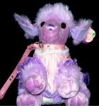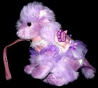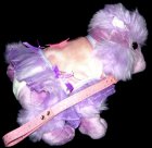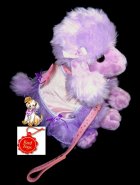 NÁDHERNÝ PLYŠOVÝ PUDLÍK S KOŽENKOVÝM OBOJKEM A VODÍTKEM, BARVA LILA/ŠEŘÍK, ROZMĚRY: PUDLÍK 27 x 20 CM, VODÍTKO 24 CM, STAV: NOVÝ ![]()