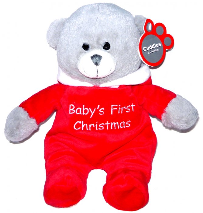 KRÁSNÝ PLYŠOVÝ VÁNOČNÍ MEDVÍDEK PRO NEJMENŠÍ, 28 CM, STAV: NOVÝ