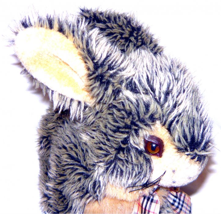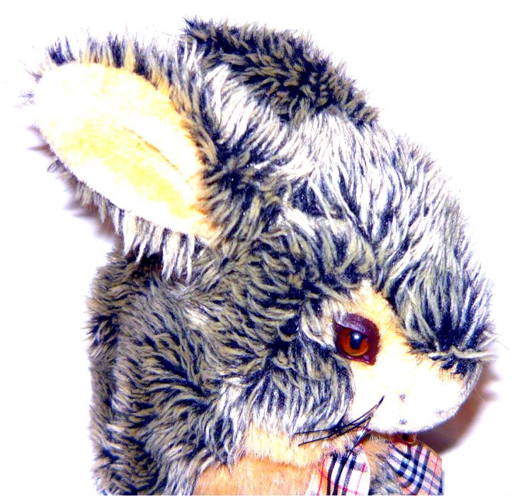 KRÁSNÝ HNĚDOBÉŽOVÝ PLYŠOVÝ KRÁLÍČEK, 22 x 22 CM, PĚKNÝ STAV