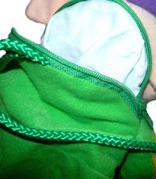 KRÁSNÝ DĚTSKÝ PLYŠOVÝ MINI BATŮŽEK-DOPEY (DISNEY, SNĚHURKA A SEDM TRAPSLÍKŮ), SE ZAPÍNÁNÍM NA ZIP, S BÍLOU BAVLNĚNOU PODŠÍVKOU, CELKOVÉ ROZMĚRY: 24 x 14 CM, BATŮŽEK SAMOTNÝ 13 x 13 CM, STAV: NOVÝ ![]()