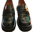 KRÁSNÁ LEHOUČKÁ ČERNÁ LAKOVANÁ DÁMSKÁ OBUV/LORDSY V PERFEKTNÍM PROVEDENÍ OD ZN. NINE WEST (NEW YORK), KVALITNÍ SYNTETICKÝ MATERIÁL, CELKOVÁ VÝŠKA 11 CM, VÝŠKA PODPATKU 4,5 CM, PEVNÁ PROTISKLUZOVÁ PODRÁŽKA 2,5 CM, VEL. 39, DÉLKA STÉLKY 24,8 CM, PĚKNÝ STAV