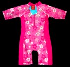 Krásná dívčí koupací kombinéza, růžové květované, se zapínáním vzadu na zip cca 21 cm, celková délka v klidu 58 cm, obvod hrudníku v klidu 2 x 28 cm, c UV ochranou, vel. 2-3 roky, zn. TU, stav: NOVÝ ![]()