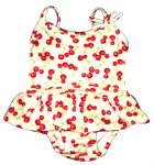 KRÁSNÉ DÍVČÍ JEDNODÍLNÉ PLAVKY S LETNÍM MOTIVEM, S VOLÁNKEM, S NEPROMOKAVÝM VNITŘKEM VE SPODNÍ ČÁSTI, STAV: PĚKNÝ