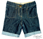 Krásné dívčí džínové bermudy/kraťasy se zapínáním na zip a knoflík, s kapsami, s regulační gumou. Kvalitní příjemná tmavomodrá džínovina (55 % bavlna + 45 % polyester). Délka 29,5 cm, obvod pasu 2 x 27 cm, rozkrok 14 cm, vel. 3-4 roky, měřte prosím! Značka NEXT, pěkný stav ![]()